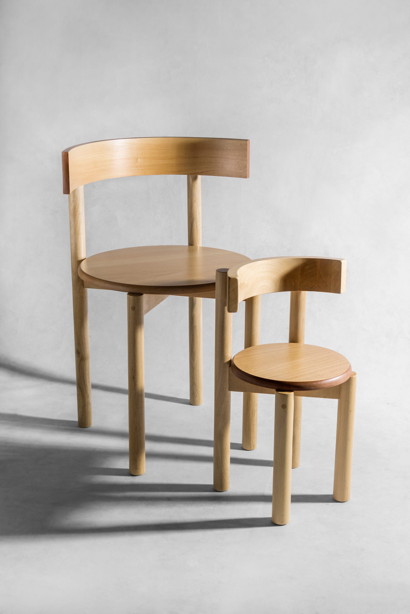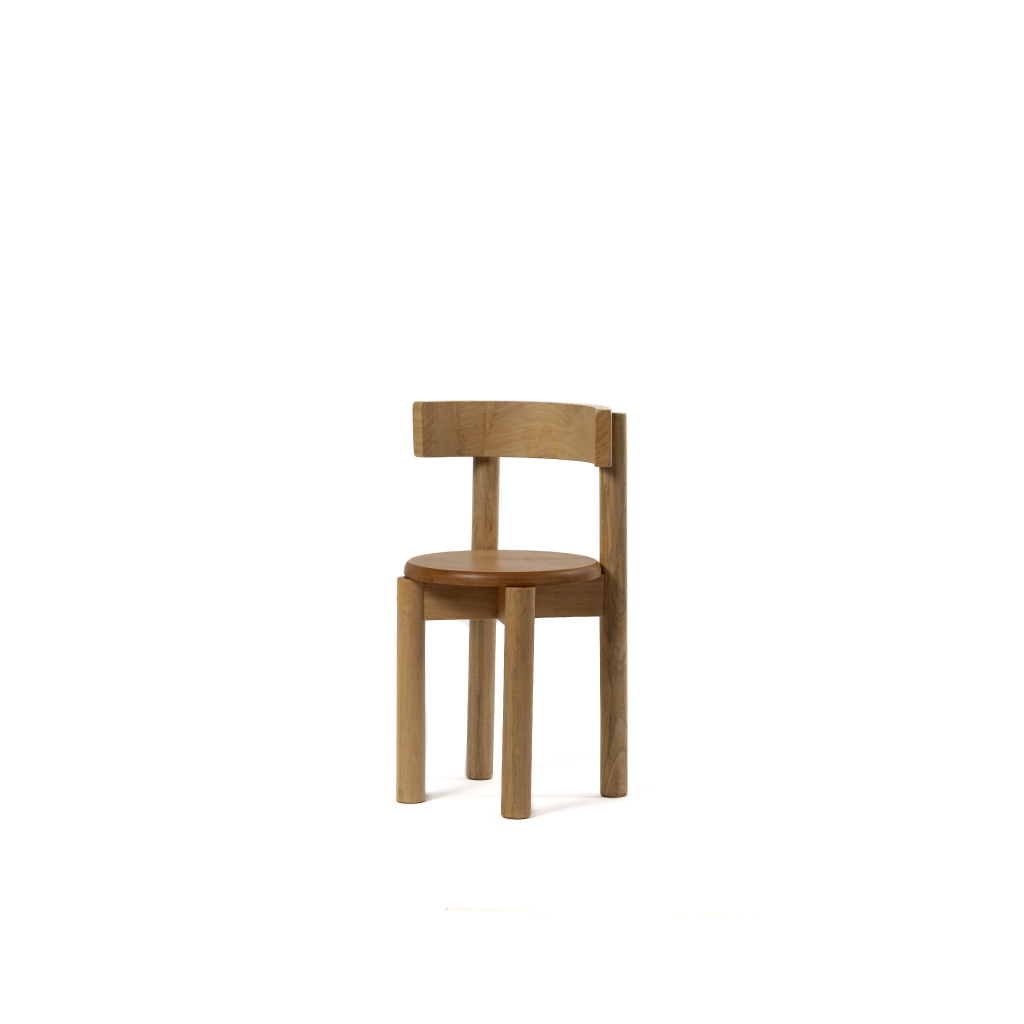 Desarrollada junto al estudio de arquitectura Nola Partners, esta versión mantiene la pureza estructural, las patas rectas y el respaldo curvo característico, adaptando sus proporciones a la escala de los más chicos.